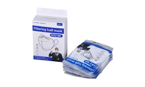 FFP2 Atemschutzmaske “SUMMIT” mit CE-Kennzeichnung auf der Maske (CE-2163). Hygienisch einzelverpackt im Blister in einer 10er Box. Der Preis bezieht sich auf 1 Maske. • CE 2163 • FFP2 EN149:2001+A1:2009, nicht medizinisch • hohe Qualität und Leistung durch Filter mit einer Filtrationseffizienz von> 95% • justierbarer Nasenbügel für eine bessere Passform • Innenseite ungefärbt • mit Ohrschlaufen • Universalgrösse • Farbe weiß Dieser Artikel ist vom Rückgaberecht ausgeschlossen.