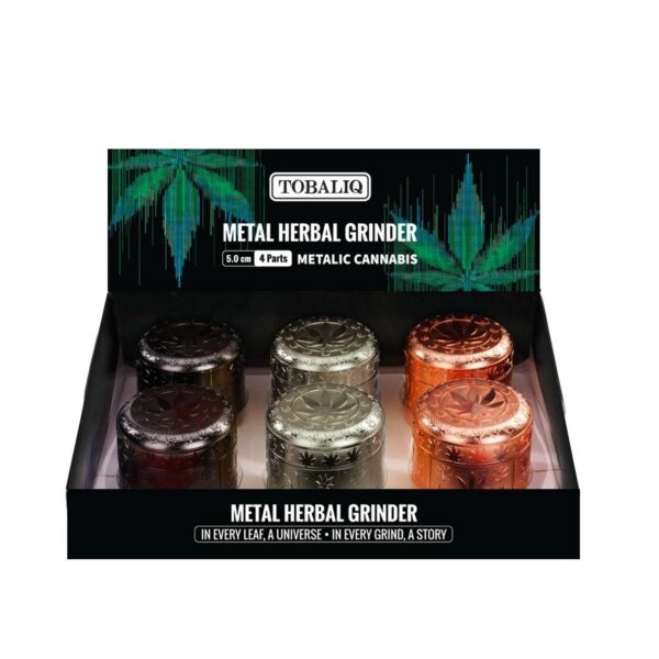 Der „Herbal Grinder Metallic Cannabis“ ist ein robuster, vierteiliger Kräutergrinder aus hochwertigem Metall. Mit einem Durchmesser von 5,2 cm eignet er sich perfekt zum feinen Zerkleinern von Kräutern oder Tabak. Die stabile Metallkonstruktion sorgt für Langlebigkeit und eine angenehme Handhabung. Dank des mehrteiligen Aufbaus mit Sieb und Auffangfach ist er besonders praktisch in der Anwendung. Das stilvolle Cannabis-Design in Metallic-Optik ist in verschiedenen Farben erhältlich – ideal für zu Hause oder unterwegs.