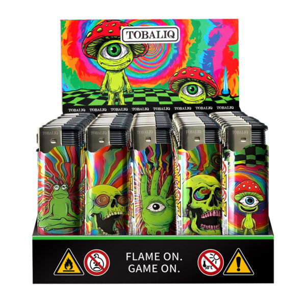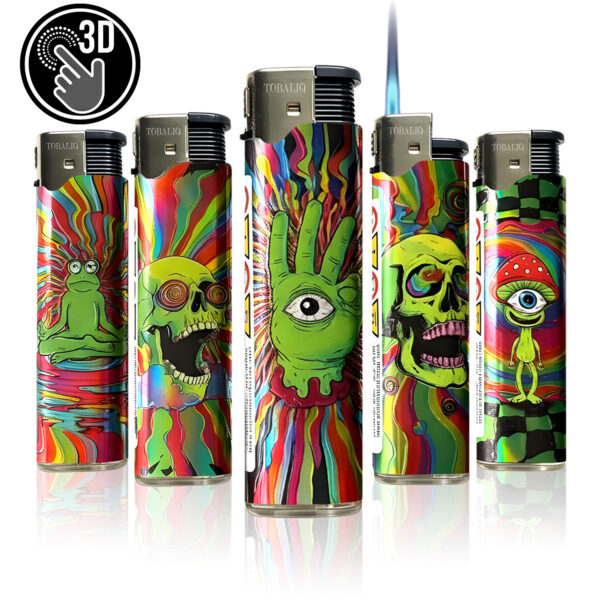 TOBALIQ Elektronische Feuerzeuge Motiv sind Feuerzeuge aus Kunststoff mit Piezozündung.