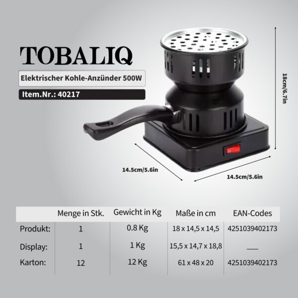 TOBALIQ Elektrischer Kohle-Anzünder 500W