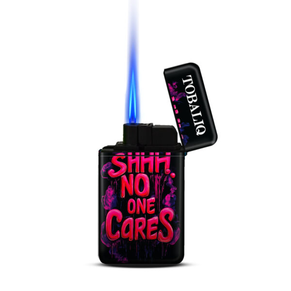 Stylisches Tobaliq Loriny Jet-Flame Feuerzeug in Blau mit frechen Sprüchen und trendigem Design. Windfest, nachfüllbar und perfekt für unterwegs – im 20er Display.