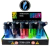 Großer, transparenter Brenner mit stabiler blauer Laserflamme. Erhältlich im 20er-Mix-Display in den Farben Blau, Hellblau, Schwarz, Rosa und Gelb-Grün. Mit Kindersicherung und nachfüllbar
