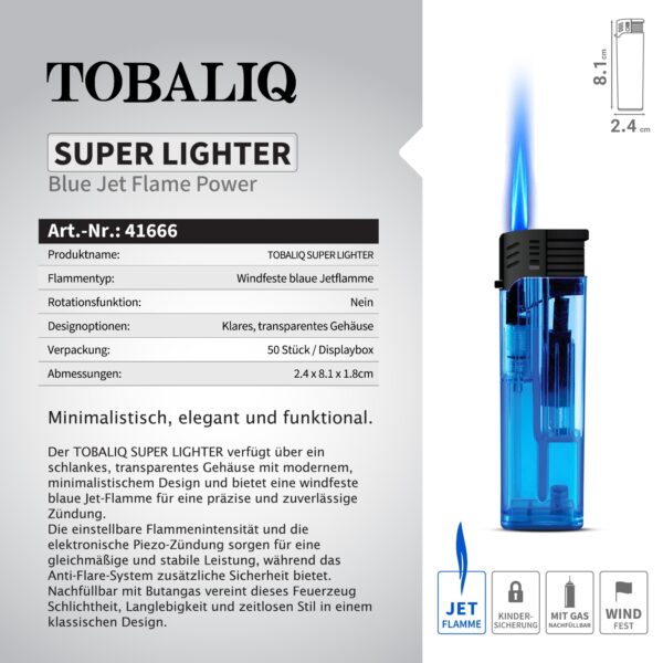 Dieses Feuerzeug ist mit einer Jetflamme erhältlich und deckt so unterschiedliche Bedürfnisse ab. Die Aluminium-Oberfläche sorgt für eine edle Optik und Langlebigkeit, während die ergonomische Form eine bequeme Handhabung ermöglicht. Dank der Nachfüllbarkeit ist das Feuerzeug nicht nur nachhaltig, sondern auch wirtschaftlich im Gebrauch.